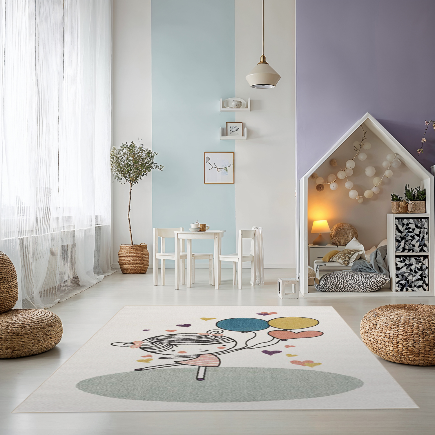 Barnmatta som sätter de små i en upptäcktsanda och gör att leka hemma till en upplevelse. Söta motiv och mjuka färger ger barnmattan en mycket speciell charm. Utsmyckade med lekfulla mönster, men med en yta som är slitstark och lättskött, uppmuntrar lekmattorna till lek och bus.