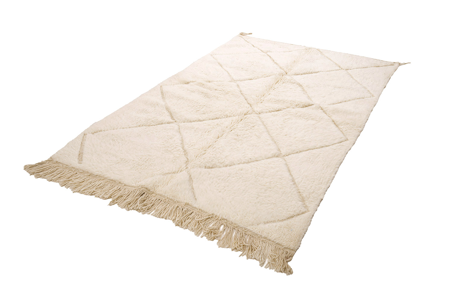 Ullen från fåren i Atlasbergen är verkligen oöverträffad och en Beni Ourain-matta är tillverkad enbart av denna rena ull i dess naturliga färger. En äkta Beni Ourain-matta är vävd med enkla och sofistikerade mönster, vilket gör den mycket eftertraktad bland designers och konsumenter världen över. En marockansk Beni Ourain-matta är ett konstverk för golvet. Om den sköts med omsorg kommer mattan att behålla sina vackra färger och ullen kommer inte att slitas ut. En matta att föra vidare i generationer.